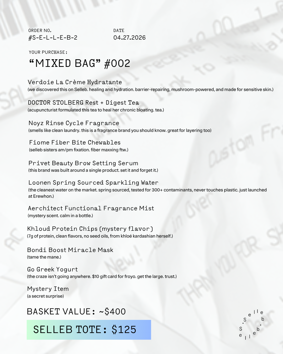 Each Selleb tote itself is $125 and includes a mix of Selleb-approved HGs with a total value of $400 — curated from real purchase data, real people, real reviews. We partnered directly with these 10 brands to bring you these beloved products.